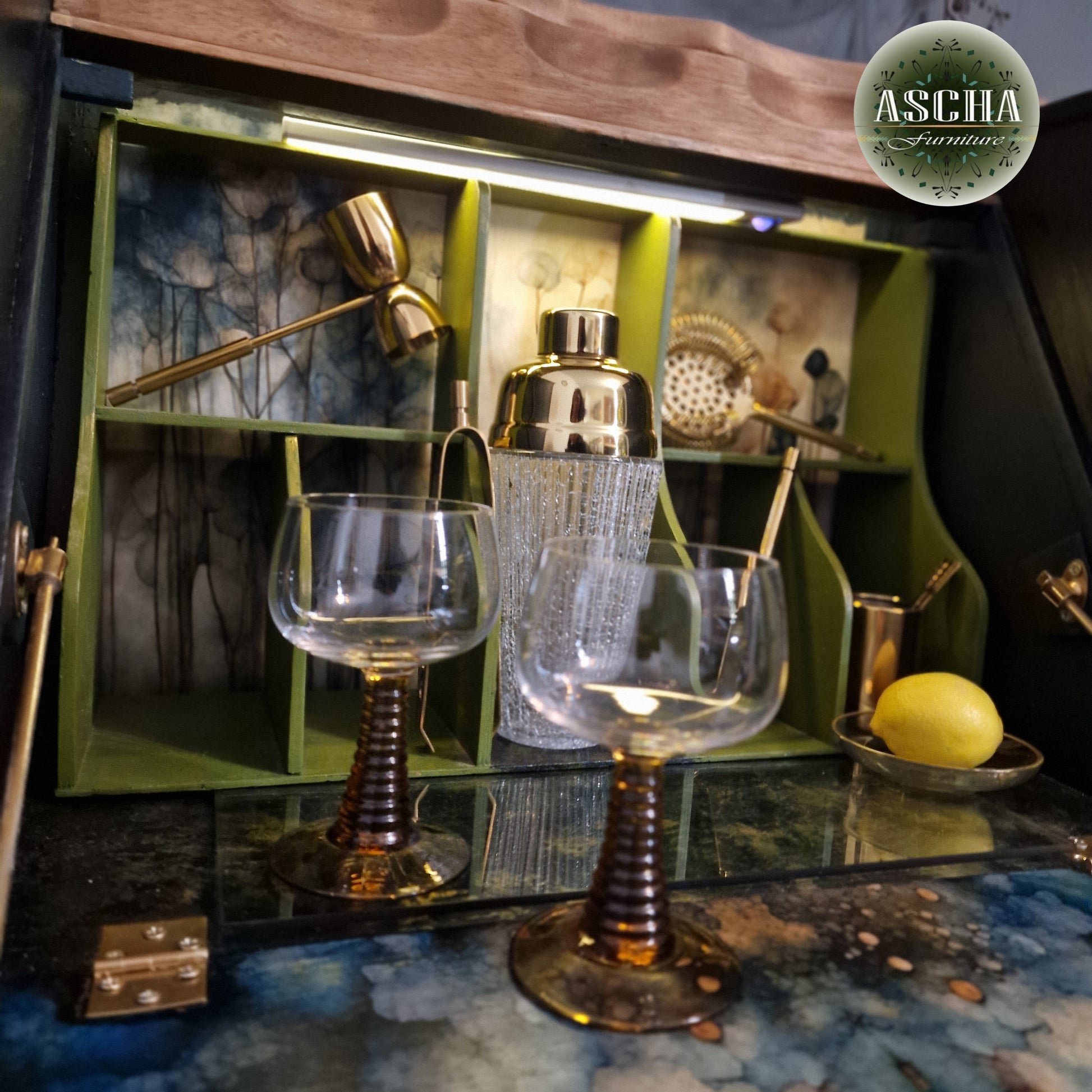 Vintage Art Deco Cocktail Cabinet Melusine Luxurious Bespoke Handpainted Drink Cabinet ex bureau display cabinet